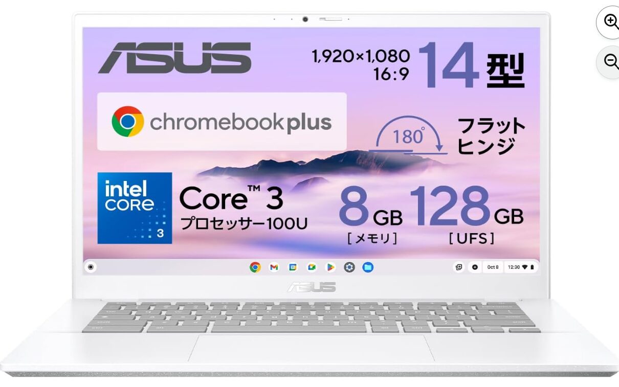 ASUSのChromebook Plusシリーズの中でもCX34は、標準性能+高コスパモデルです。