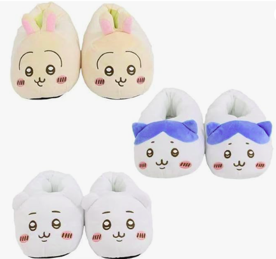 ハチワレやうさぎの表情を再現したスリッパは、ファン必携のアイテムです。