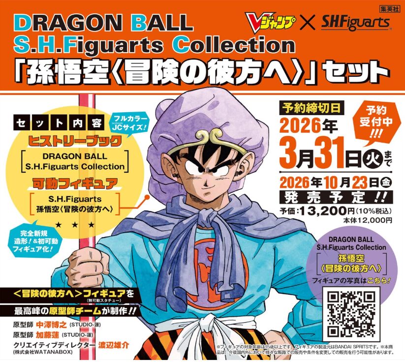 S.H.Figuarts「ドラゴンボール」シリーズ200体突破を記念して登場した『DRAGON BALL S.H.Figuarts Collection「孫悟空〈冒険の彼方へ〉」セット』は、完全新規造形の悟空可動フィギュアと、シリーズの歴史を総覧できる112ページのヒストリーブックがセットになった特別なアニバーサリー商品です。単なる新作フィギュアではなく、長年続いてきたS.H.Figuartsドラゴンボールの進化と到達点を“形として残す”ことを目的とした構成が大きな特徴。本記事では、セット内容の詳細、新規悟空の魅力、既存モデルとの違い、コレクター視点での価値、そして最終的に「予約すべきかどうか」までを専門的に解説します。