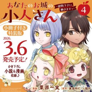 あなたのお城の小人さん ~御飯下さい、働きますっ~ 4巻特装版 は、限定小冊子が付属するファン必携の特装版です。作家陣による座談会、小説と漫画が繋がる描き下ろしストーリー、初公開ラフイラストやプロフィールなど、通常版では読めない特別コンテンツを多数収録。本編の魅力をさらに深掘りできる構成になっています。本記事では通常版との違い、内容の見どころ、保存価値や将来的なプレミア可能性までわかりやすく解説します。