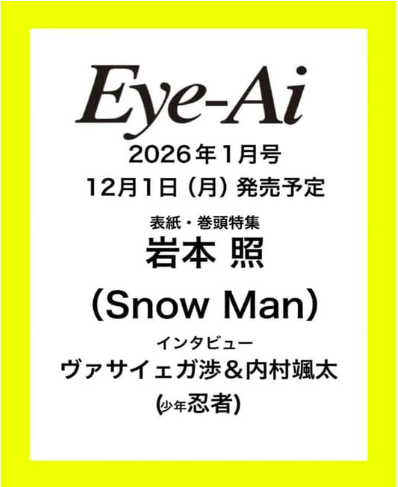 2025年12月1日発売の「Eye-Ai(アイアイ)2026年1月号」は、Snow Man・岩本照が単独で表紙を飾る話題の最新号。