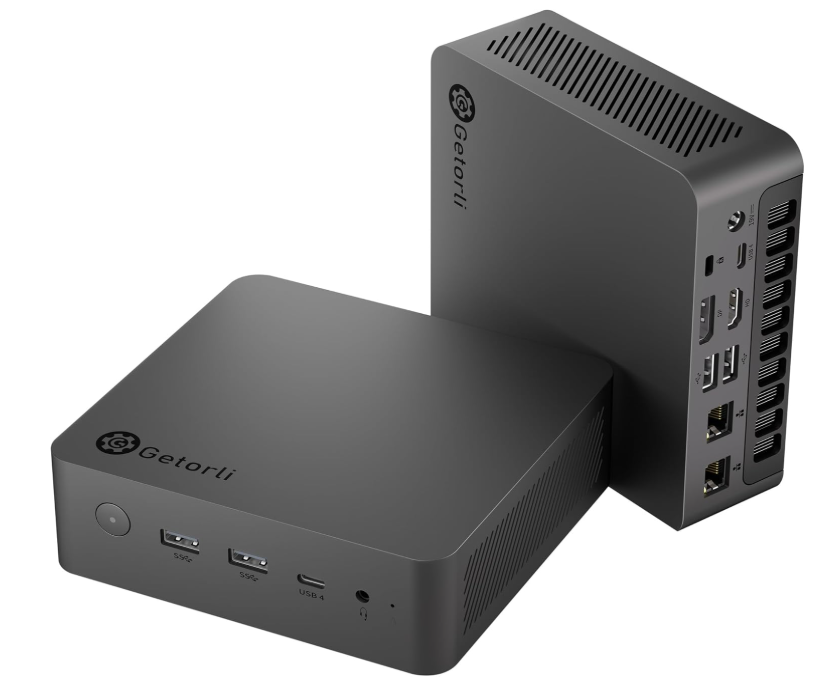 GetorliのミニPCは、一般的な省電力ミニPCとは一線を画す、高性能・多用途志向のハイエンドモデルとして位置づけられています。Ryzen 7 PRO 8845HSを採用し、業務用・クリエイティブ・ゲーミングといった複数ジャンルを1台でカバーできる点が大きな特徴です。
