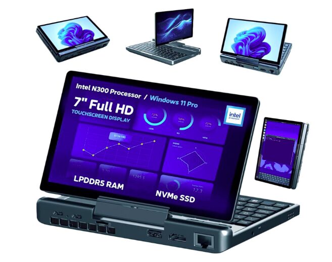 7インチという超小型筐体ながら、Core i3-N300/16GBメモリ/512GB SSDという、一般的なモバイルノート並みのスペックを搭載。さらに、HDMI 2.1、有線LAN(2.5GbE)、USB 3.2 Gen2 など、フルサイズノートにも迫る拡張性を備えている点が最大の魅力です。