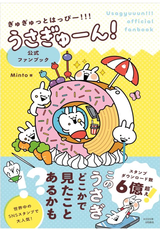 本書は、SNSスタンプで世界的な人気を誇る「うさぎゅーん!」初の公式書籍として刊行されたファンブックです。スタンプのダウンロード数は世界累計6億超(2025年8月時点)と圧倒的で、スマホの中だけで親しまれてきたキャラクターが、ついに“本”として形になりました。