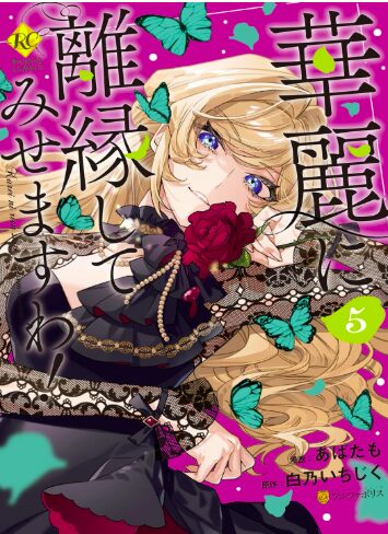 『華麗に離縁してみせますわ!』第5巻は、強く美しく成長した令嬢ローザと、彼女の夫エイドリアンが織りなす新章の物語。
