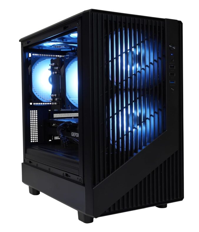 本モデルは、派手すぎないRGB照明を備えたゲーミングデスクトップとして、実用性とゲーミング感のバランスが取れた外観です。付属するRGBライティングは、プレイ中の没入感を高めつつ、日常使いでは主張しすぎないため、デスク周りの雰囲気を損ねにくいのが特徴です。