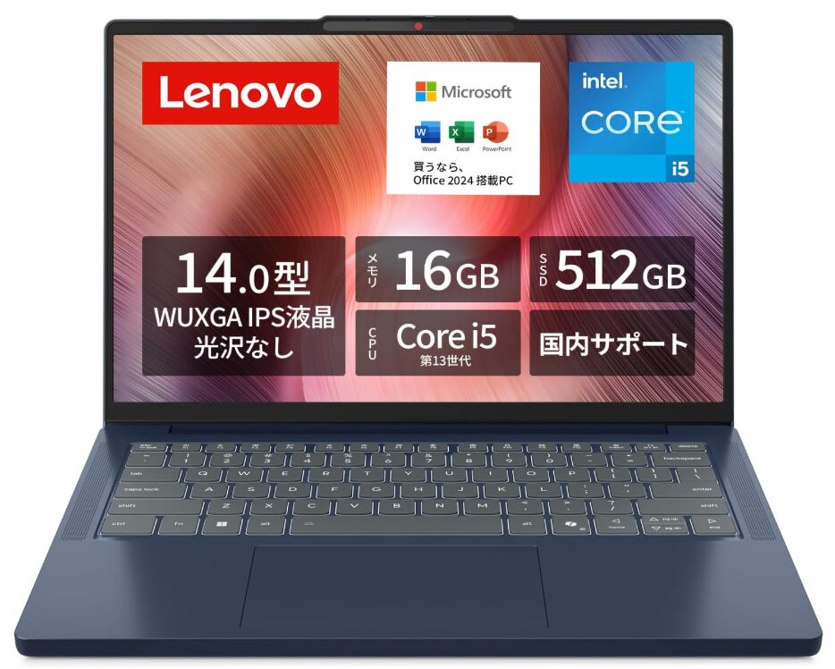 他社製では、HP PavilionやDell Inspironの14インチモデルが競合しますが、同価格帯ではメモリ8GB構成が多く、Officeが非搭載のケースも少なくありません。Core i5-13420H+16GBメモリ+Office 2024という構成を考慮すると、IdeaPad Slim 3は実質的に一段上の構成を持つモデルと言えます。