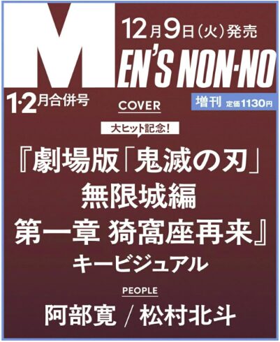 1. 「MEN’S NON-NO」2026年1・2月合併号増刊が予約開始!創刊40周年×鬼滅の刃が表紙を飾る