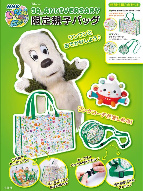 「NHK いないいないばあっ!30TH ANNIVERSARY 限定親子バッグ」は、親子で楽しめる“実用×記念”を兼ね備えたスペシャルムックです。番組30周年を記念して制作され、「大容量トートバッグ」と「ワンワンショルダーポーチ」がセットになった豪華仕様が魅力。0歳の赤ちゃんから使える設計で、日常使いからお出かけまで幅広く活躍します。さらに誌面ではキャラクター紹介やヒストリー、ぬりえなども収録されており、親子で楽しめる内容が充実。単なる付録付き雑誌ではなく、「思い出として残るアイテム」として高い人気を集めています。