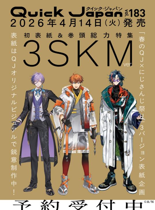 4月14日発売の『クイック・ジャパン vol.183』は、「春のQJ×にじさんじ祭り!」企画の一環として、3SKMを表紙&巻頭特集に迎えた特別バージョンです。