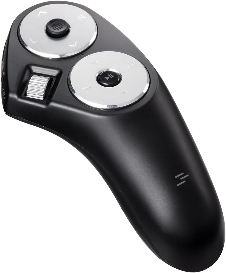 さらに、フルスクリーン表示やブラックスクリーンといったプレゼン機能にも対応しているため、本格的なプレゼンリモコンとしても使用できます。動画を含むスライドを再生する場合でも、メディアコントロールボタンを使って操作できる点も魅力です。