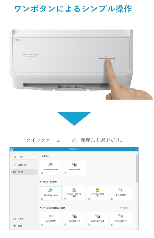 初心者でも戸惑わず、紙資料をサクッとデジタル化できるのがScanSnap最大の特徴。