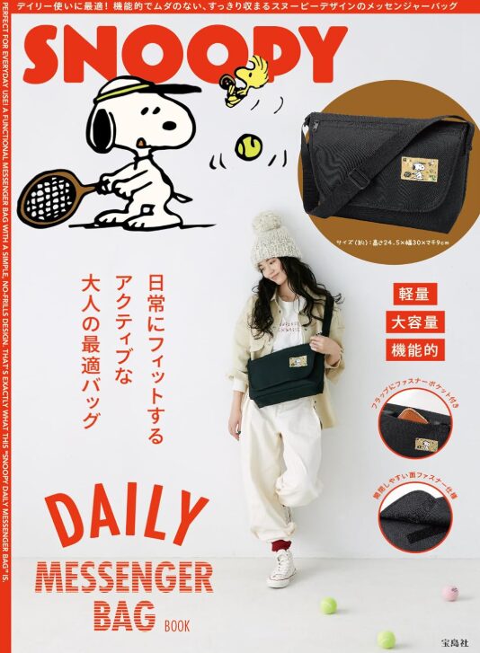 宝島社の人気ブランドムック『SNOOPY DAILY MESSENGER BAG BOOK』は、日常使いにフィットする実用性重視のメッセンジャーバッグが付属した注目の1冊です。高さ24.5×幅30×マチ9cmの扱いやすいサイズに加え、軽量で耐久性のある素材を採用し、通勤・通学・休日外出まで幅広く対応。スヌーピーデザインも主張しすぎない大人仕様で、コーディネートを選ばず使える点が魅力です。本記事では収納力・素材・着用感・口コミ評価・他付録比較まで整理し、購入前に知っておきたい実用性を徹底解説します。