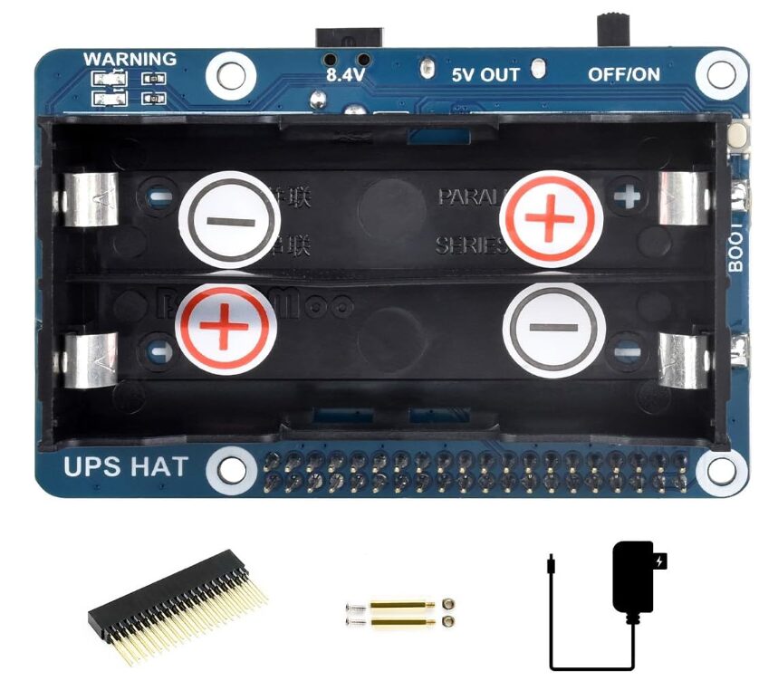 Waveshare製「UPS HAT(5V)」は、Raspberry Piシリーズに装着して使用する無停電電源拡張ボードです。40PIN GPIOヘッダーに直接接続するHAT形式を採用しており、外付けUPS機器を使わずにコンパクトな電源バックアップ環境を構築できます。